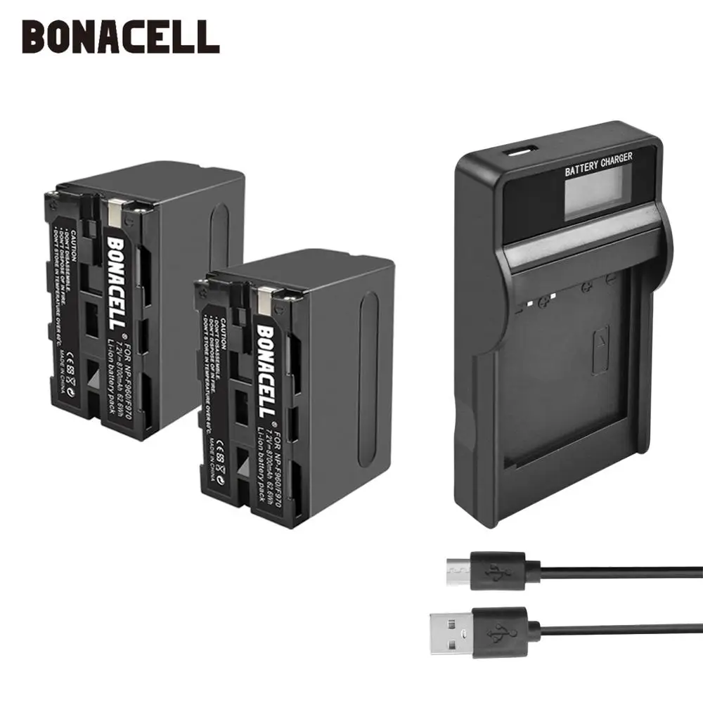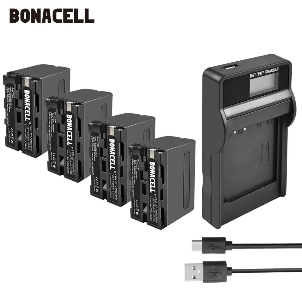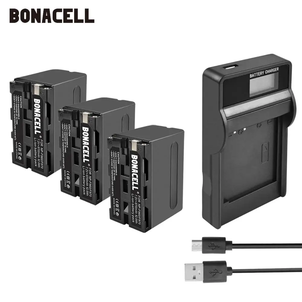 Bonacell 6000mAh NP-F770 NP-F750 NP F770 np f750 NPF770 750 Batteries+LCD Charger For Sony NP-F550 NP-F770 NP-F750 F960 F970 L10