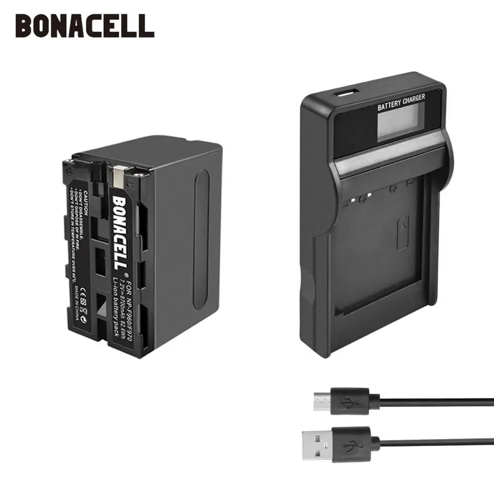 Bonacell 7.2V 8700mAh NP-F960 NP-F970 NP F960 F970 F950 Battery+Charger For Sony PLM-100 CCD-TRV35 MVC-FD91 MC1500C L50