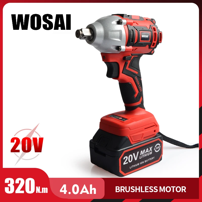 Best Product WOSAI 20V Brushless Electric Wrench Impact Wrench Socket Wrench 320N.m 4.0AH Li Battery Hand Drill