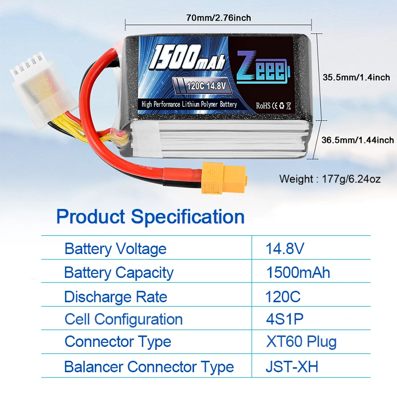 Buy Now 2UNITS Zeee Lipo Battery 14.8V 120C 1500mAh 4S Graphene RC Lipo Battery Pack with XT60 Plug for RC