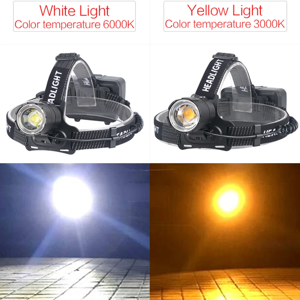 Hot Sale 7000LM XHP70.2 Led Headlamp XHP70 Most Powerful Yellow or White Led Headlight Fishing Camping ZOOM