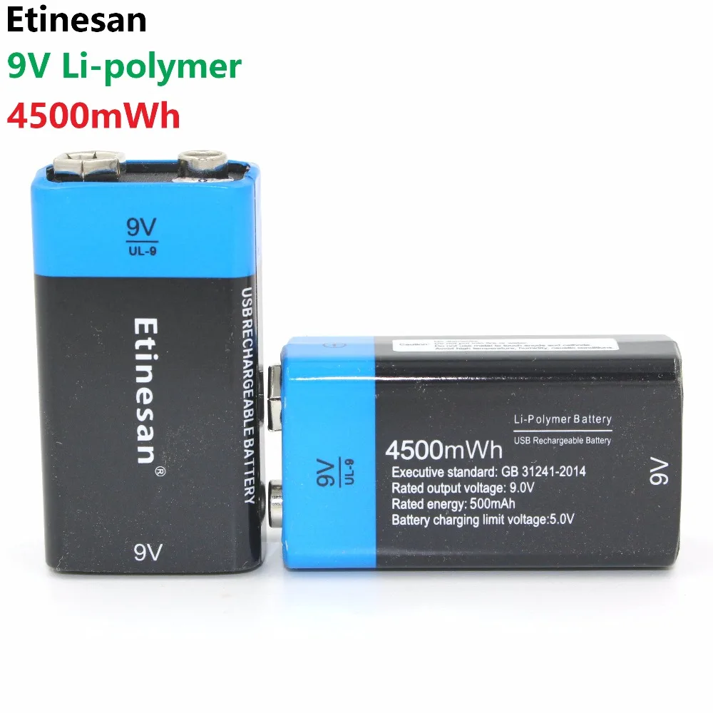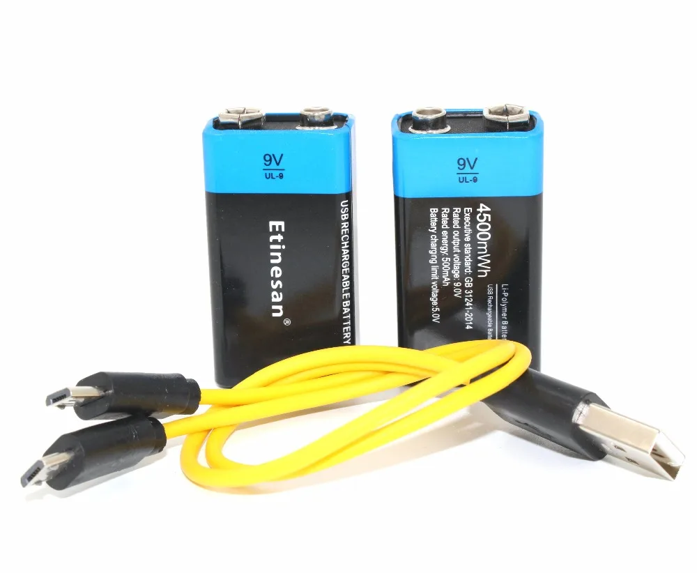 SUPER! Etinesan 9V 4500mWh lithium li-polymer li-ion rechargeable batteries + usb cable for toy,game,multimeter,microphone ect.