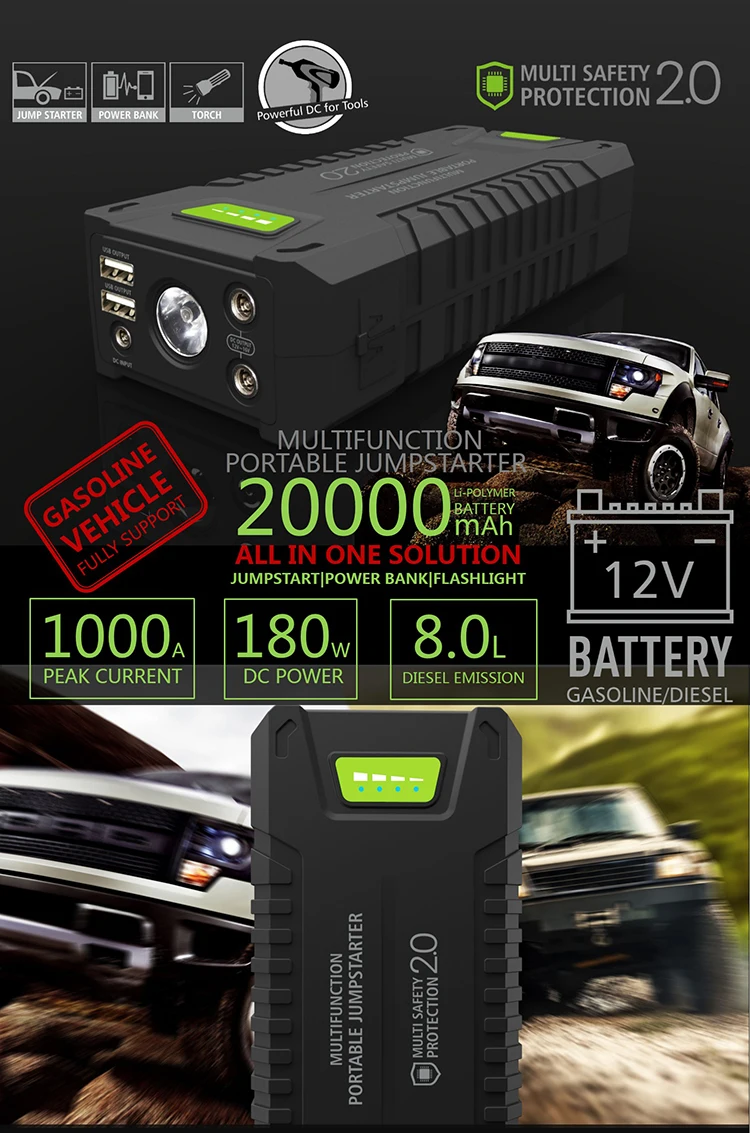 Best Deal Car Jump Starter 20000mAh 1000A Vehicle Emergency Battery Portable 12V External Car Battery Booster