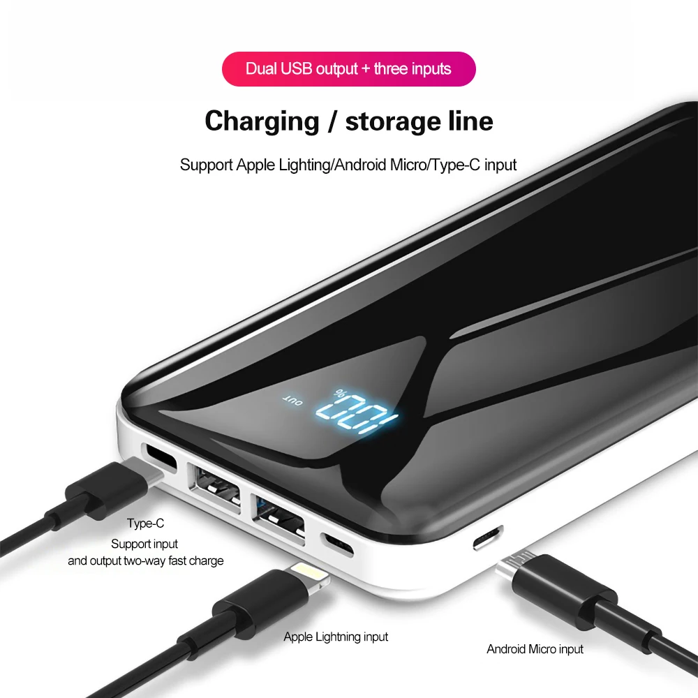 20000mAh Power Bank Dual USB Powerbank With LED Display Portable Poverbank External Battery For Xiaomi Mi9 iPhone Samsung Huawei