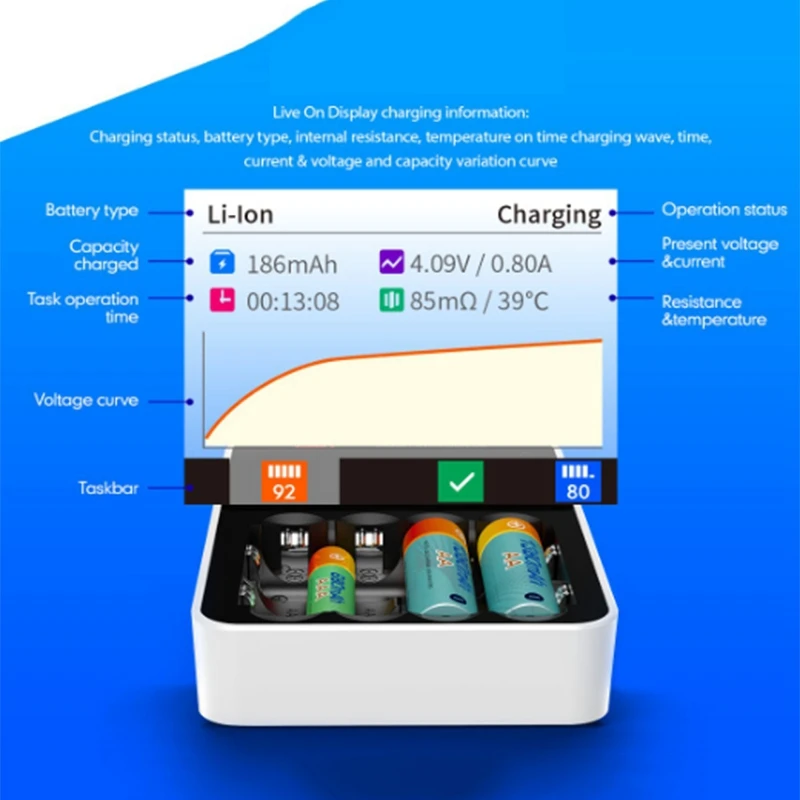 Best Seller Isdt C4 8A Contact Screen Smart Battery Charger with Usb Output for Aa Aaa Battery with Ips Display