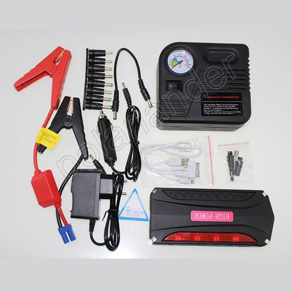 Mini mobile phone laptop Battery Charger Portable Car Jump Starter with pump auto Booster 2 USB port Power Bank 12V