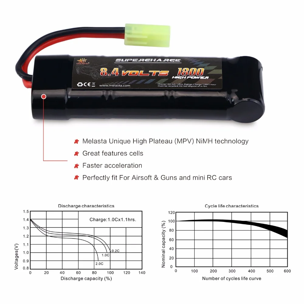 Buy Now MELASTA 8.4V 1800mAh Ni-MH High Power Battery Packs with Mini Tamiya Discharge Connector for RC Rac