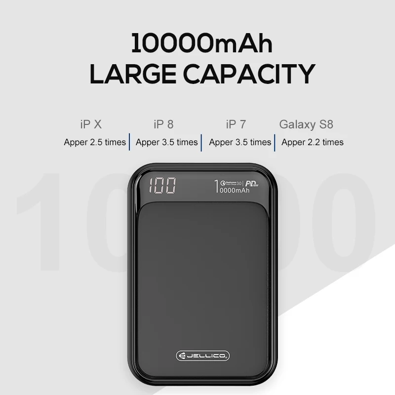 Buy Now Jellico Power Bank 10000mAh LED Portable Battery Power Bank PD Fast Quick Charge 12V Powerbank for