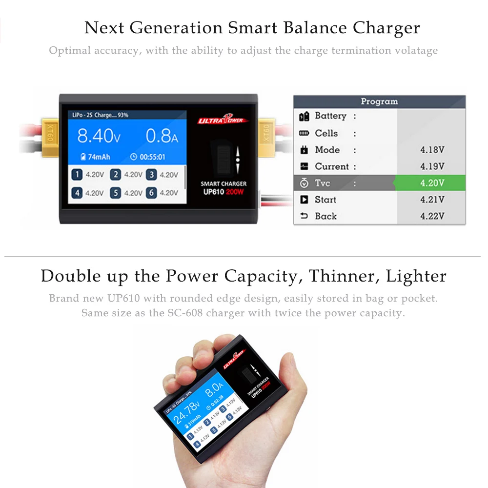Big Promo UP610 200W Pocket Portable Smart Charger for RC Drone Quadcopter Car 1-6S Lipo Battery 1-16S NiCd N