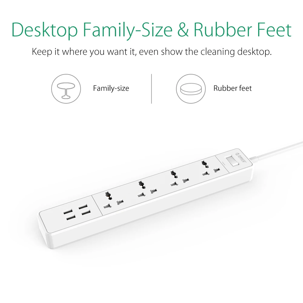 ORICO SPC Power Strip 5 AC Socket with 2 USB Charging Ports Power Button Control US Plug with USB Smart Charger