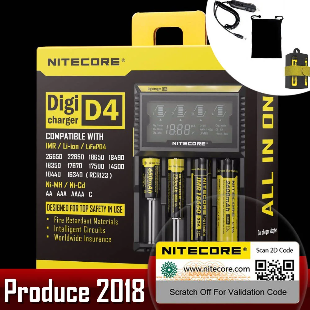 Hot Sale 100% Original Nitecore D4 Battery Charger LCD Intelligent Charger Li-ion 18650 14500 17670 18490 17