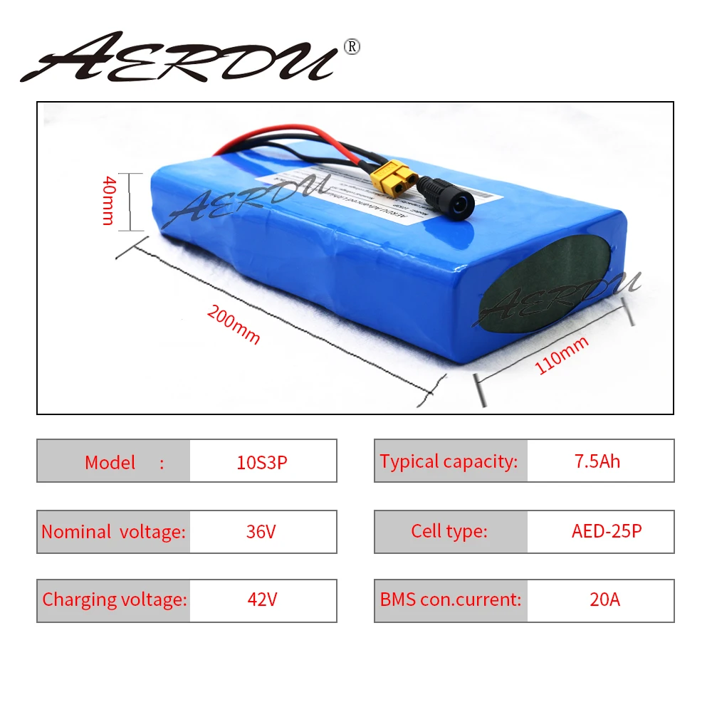 Buy Now AERDU 36V 10S3P 42V 7.5Ah Ultra thin 15A BMS High power capacity 18650 lithium battery pack ebike e