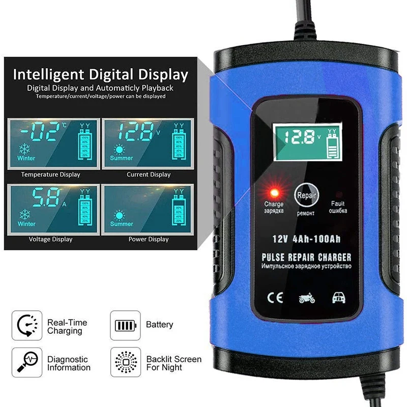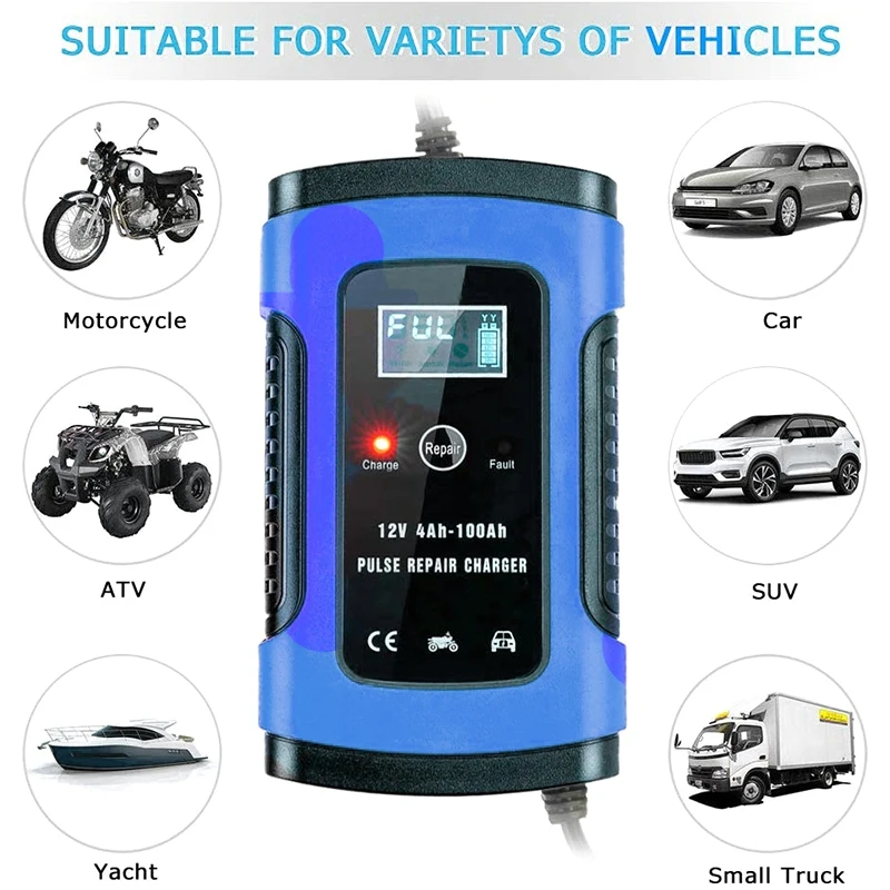 Hot Sale Car Motorcycle Battery Charger Smart Battery Charger & Maintainer Automatic 6A 12V with LCD Screen