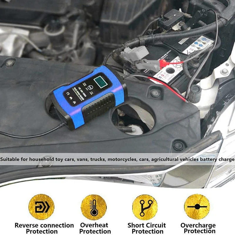 FOXSUR 12V 5 Stage Fully Automatic Smart Battery Charger Maintainer Rescue for All Types Lead Acid Batteries Of Car, Motorcycle,
