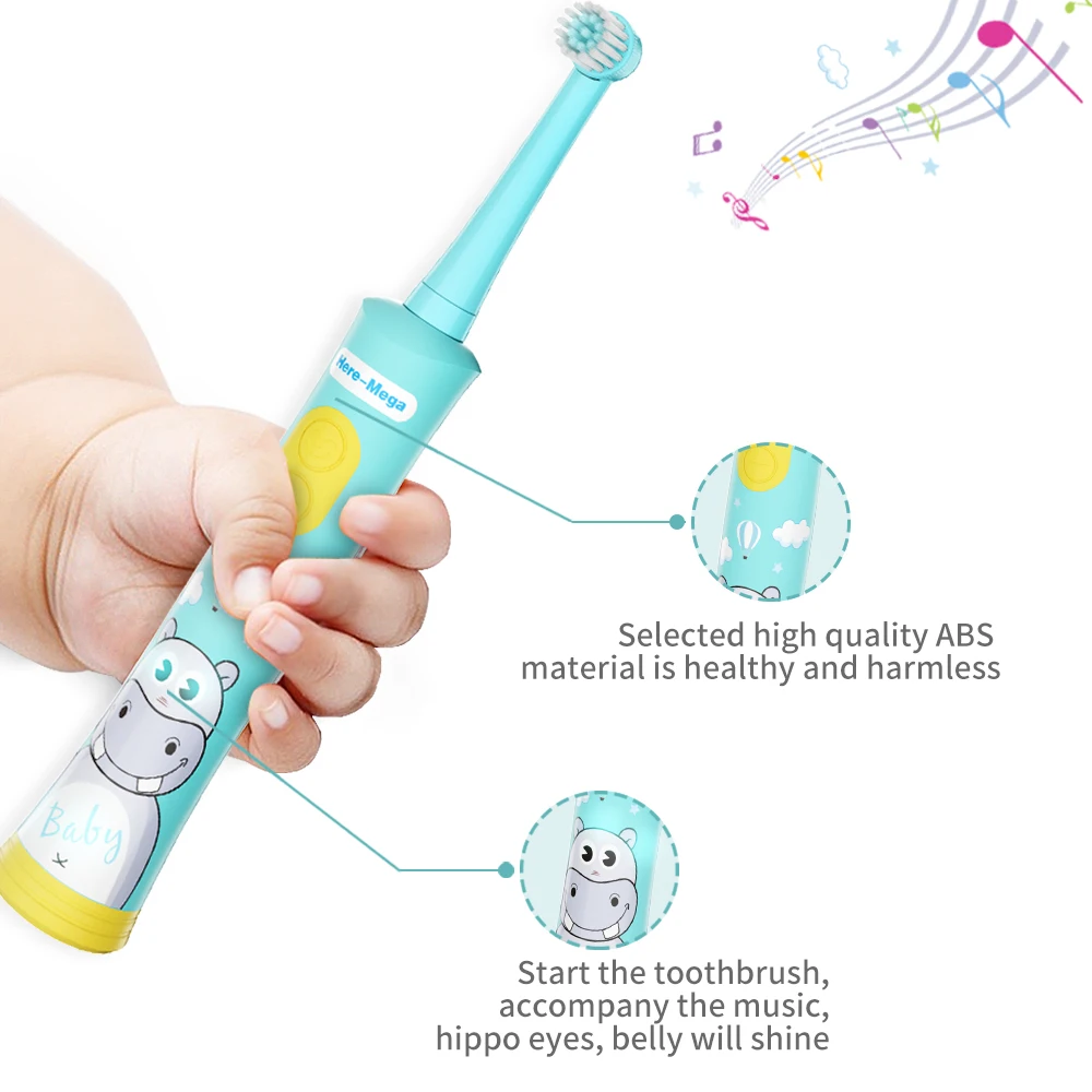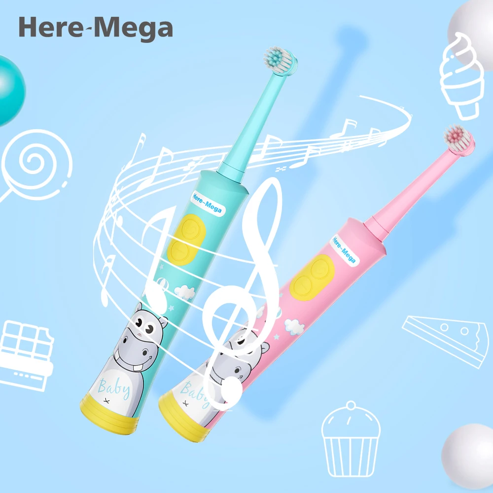 Hot Sale HERE-MEGA Kids Rotating Baby Electric Toothbrush Cleaning Whitening Timer Children Musical Tooth Br
