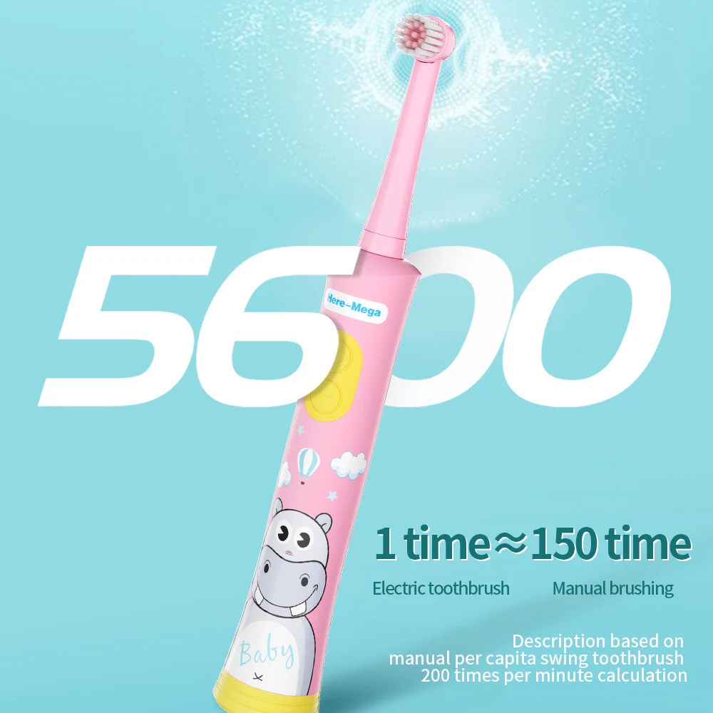 HERE-MEGA Rotating Electric Toothbrush Child Battery Charging Tooth Brush Dupont Brush Head Safe Healthy 2 Cleaning Modes