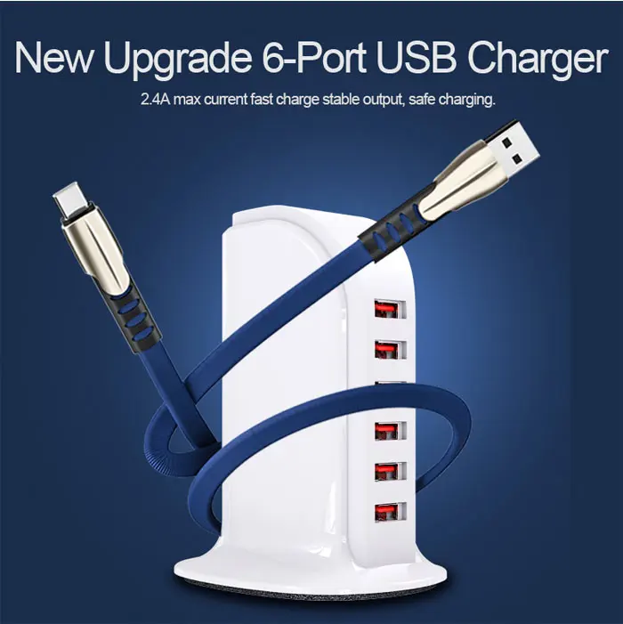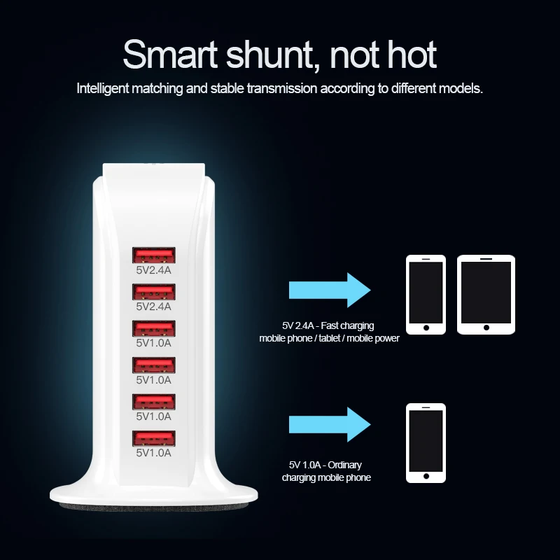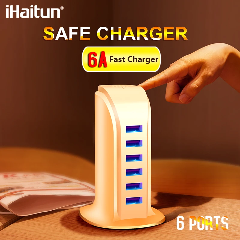 Hot Sale iHaitun 6 Port 6A 30W USB Charger Quick Charge 3.0 Smart Mobile Phone Tablet Charger For iPhone X 7