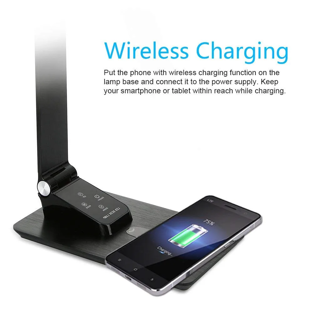 Hot Sale LED Desk Lamp with USB PortPremium Metal Office Light with Wireless Charger3 Lighting Modes5 Bright